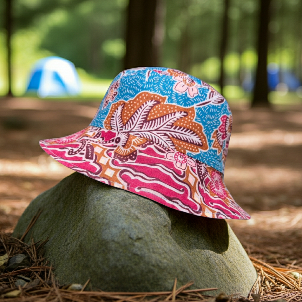 Discover versatile style with our handmade bucket hat. Featuring intricate batik pattern on one side and a random plain color on the reverse, this reversible hat combines traditional craftsmanship with modern flair. Perfect for adding a unique touch to any outfit.