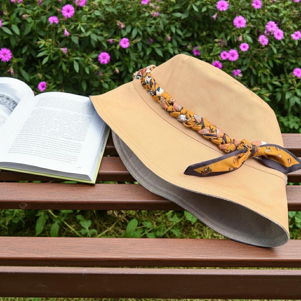 Double the looks, double the fun! This reversible bucket hat that switches up your style in seconds. Complete with a removable braided twilly for extra pop of charm.
