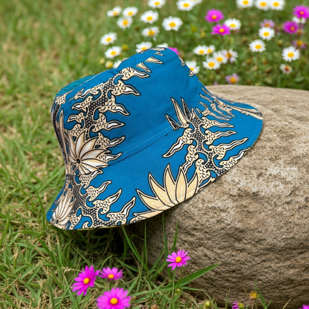 Discover versatile style with our handmade bucket hat. Featuring intricate batik pattern on one side and a random plain color on the reverse, this reversible hat combines traditional craftsmanship with modern flair. Perfect for adding a unique touch to any outfit.