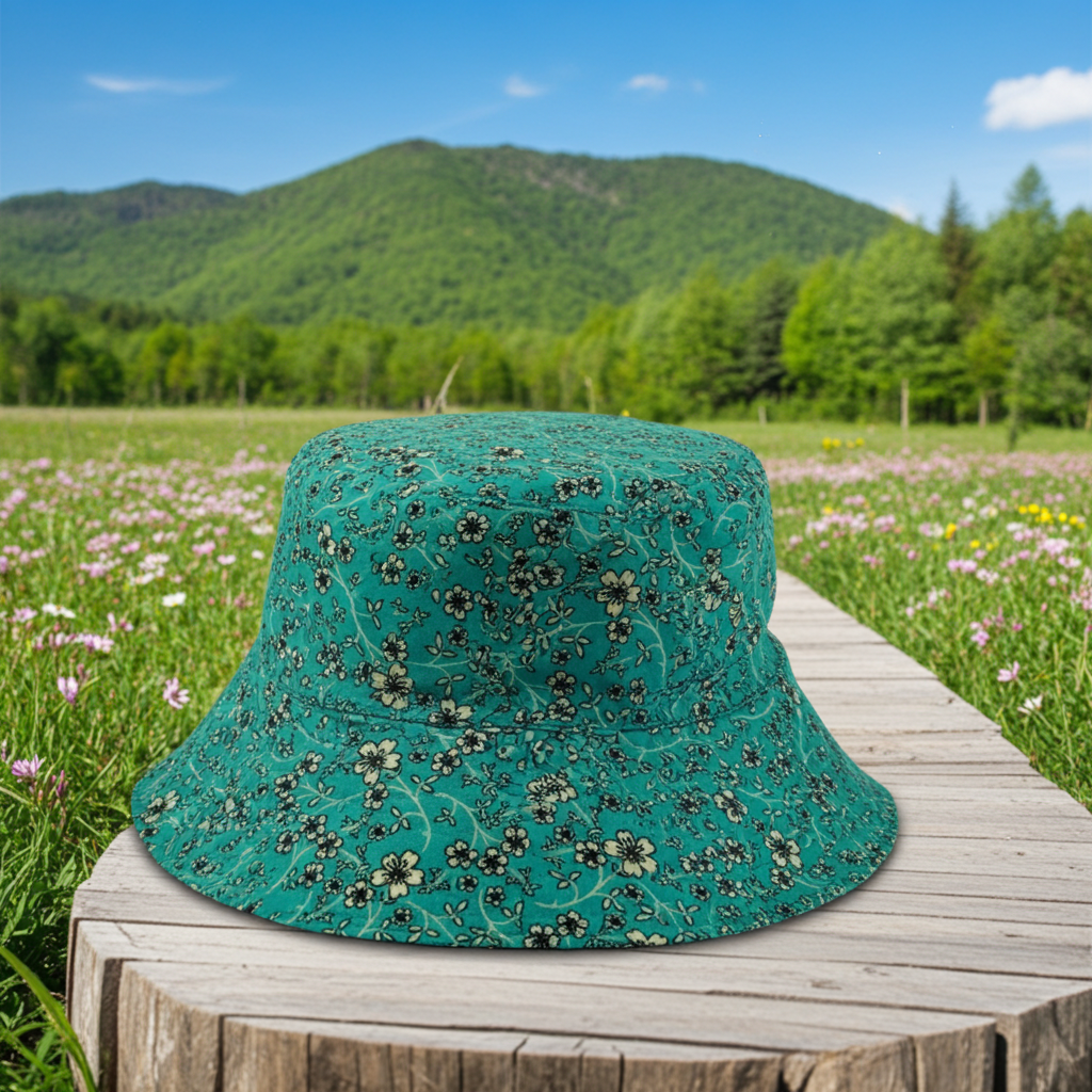 Discover versatile style with our handmade bucket hat. Featuring intricate floral pattern on one side and a random plain color on the reverse, this reversible hat combines traditional craftsmanship with modern flair. Perfect for adding a unique touch to any outfit.