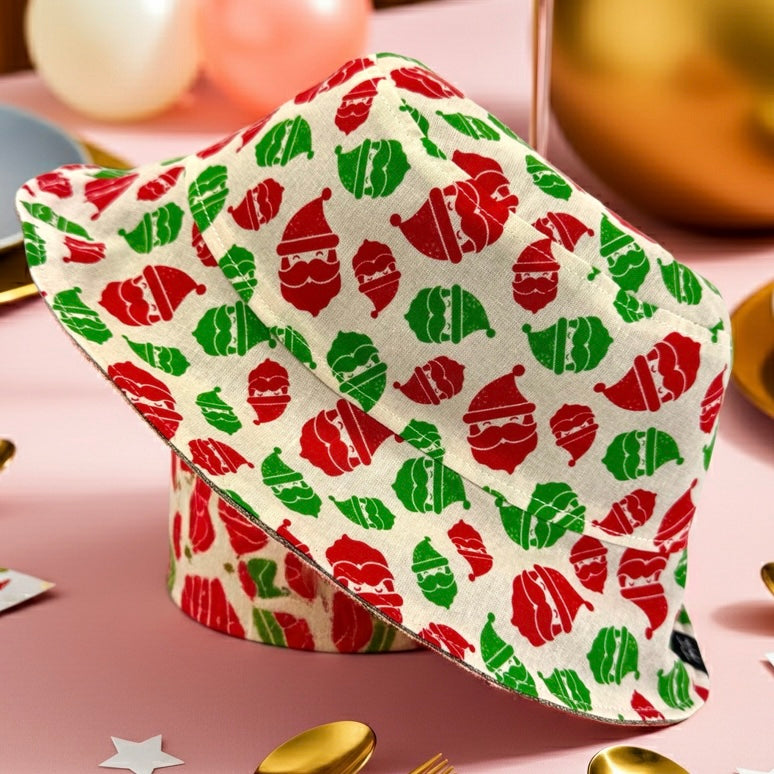 Get into the holiday spirit with our handmade reversible bucket hat. One side features a charming Christmas pattern, while the reverse offers a classic solid color—perfect for festive celebrations and winter style!