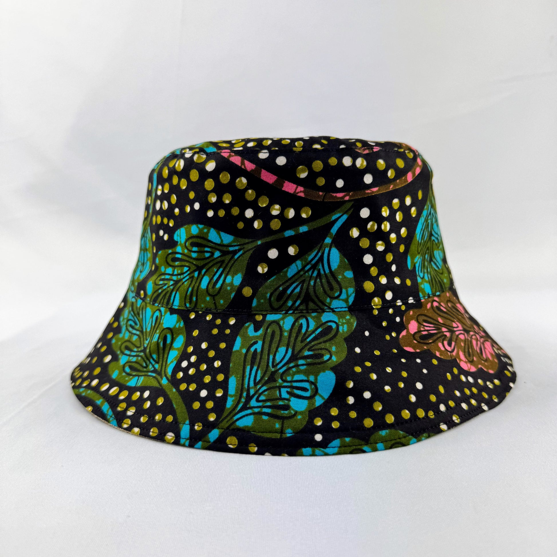 Discover versatile style with our handmade bucket hat. Featuring intricate African batik pattern on one side and a random plain color on the reverse, this reversible hat combines traditional craftsmanship with modern flair. Perfect for adding a unique touch to any outfit.