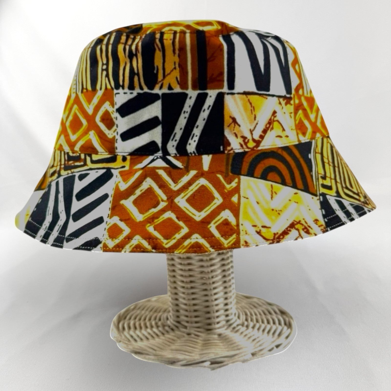 Discover versatile style with our handmade bucket hat. Featuring intricate African batik pattern on one side and a random plain color on the reverse, this reversible hat combines traditional craftsmanship with modern flair. Perfect for adding a unique touch to any outfit.