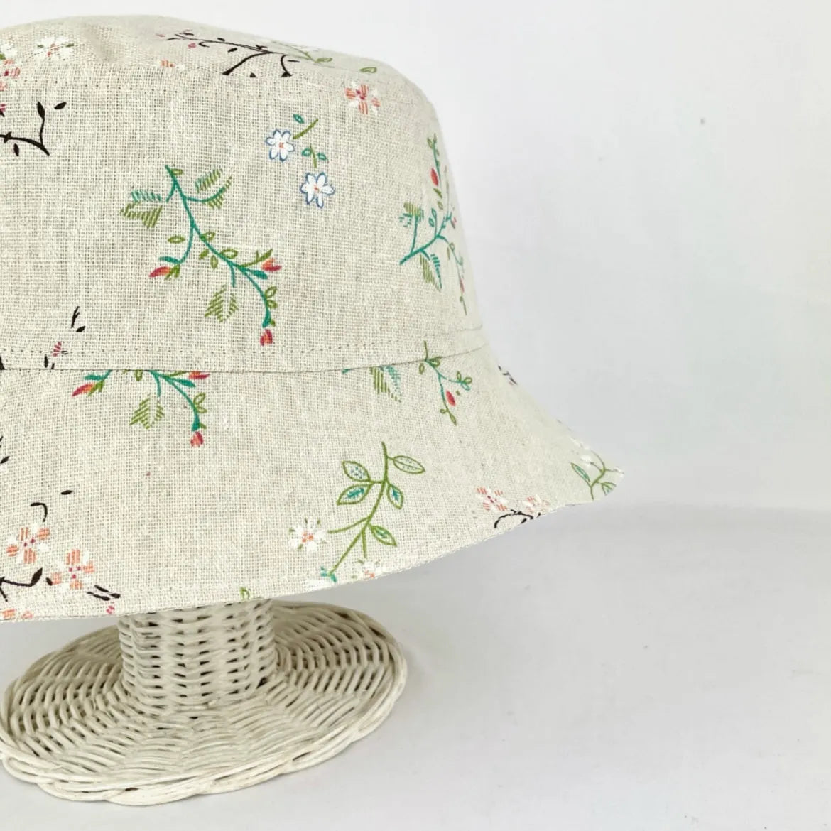 Discover versatile style with our handmade bucket hat. Featuring intricate floral pattern on a natural linen fabric, this reversible hat combines traditional craftsmanship with modern flair. Perfect for adding a unique touch to any outfit.